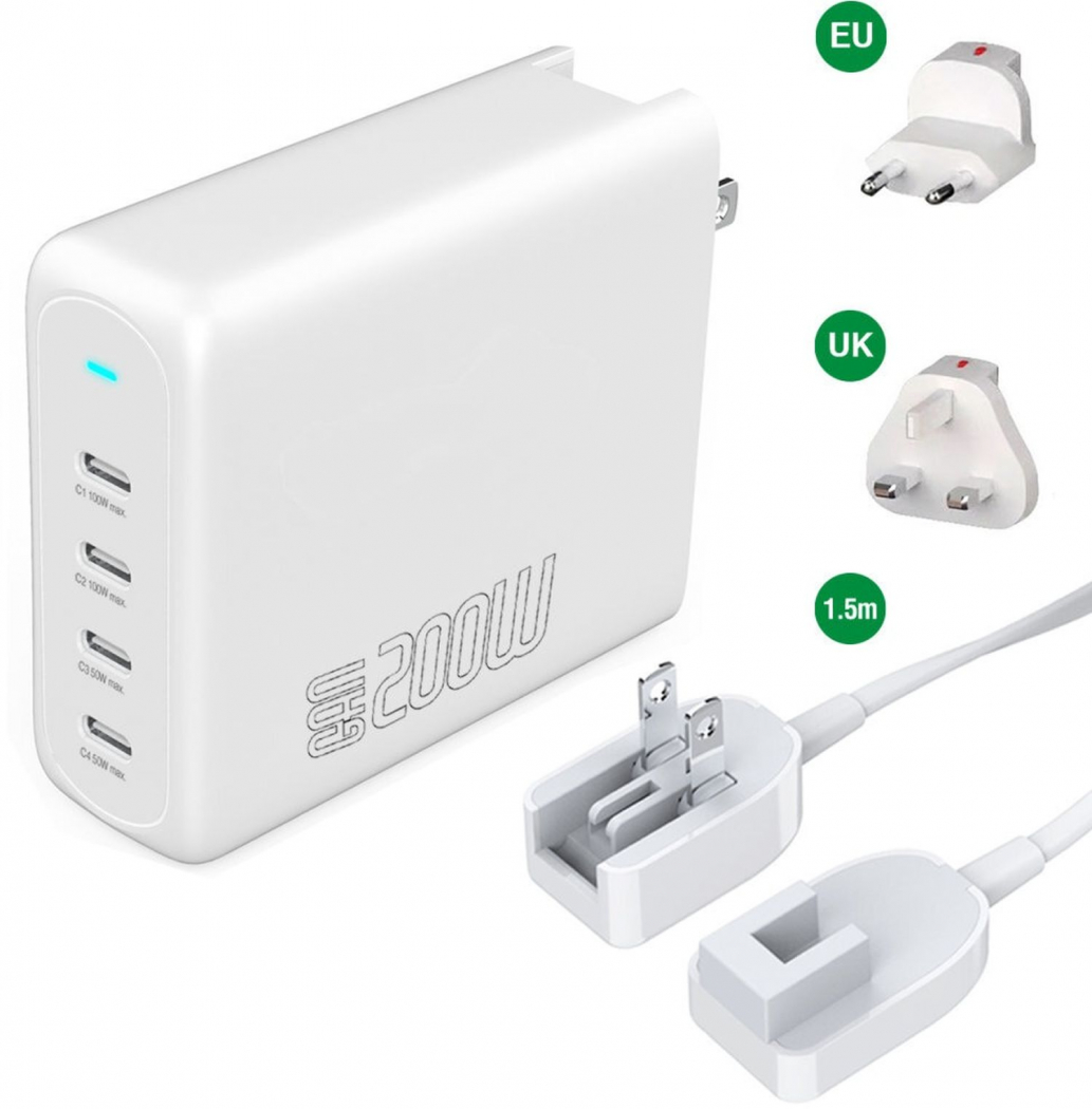 4smarts Ladegerät GaN Flex Pro 200W 4x USB-C Anschlüsse weiß
