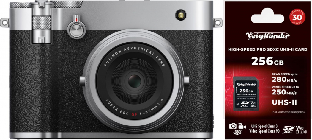 Fujifilm GFX 100RF Silber + Voigtländer Prof. High-Speed SDXC 256GB UH