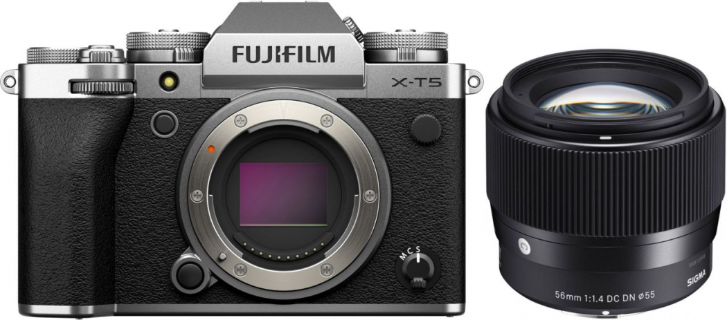 Fujifilm X-T5 Gehäuse silber + Sigma 56mm f1,4 DC DN (C)