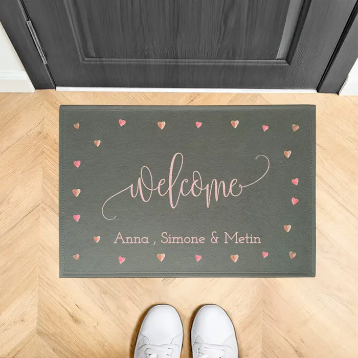 Erlebe die familiäre Verbundenheit bereits an der Haustür mit einer Fußmatte Familie Welcome. Ein herzliches Willkommen für deine Gäste und ein Symbol für die bedeutsame Liebe in deiner Familie. Wähle jetzt deine individuelle Familien-Fußmatte und spüre die Magie des Familienlebens