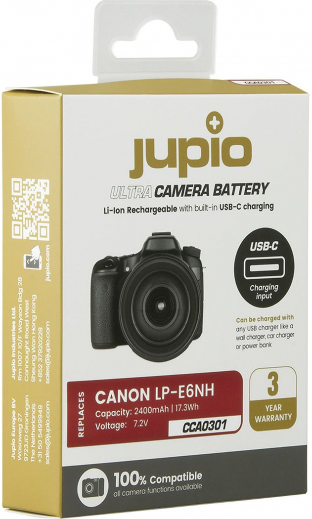 Startseite » Shop » Zubehör » Energie » Akkus » für Canon » Jupio LP-E6NH *ULTRA C* USB-C input 2400mAh