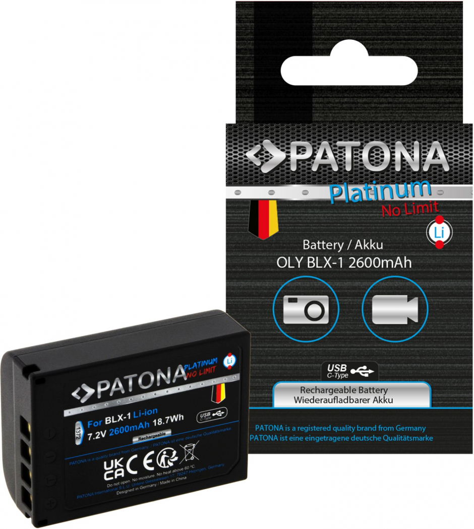 PATONA Platinum Akku mit USB-C Input Olympus BLX-1