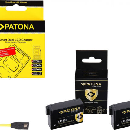 PATONA Dual USB Ladegerät + 2x Akku Canon LP-E8