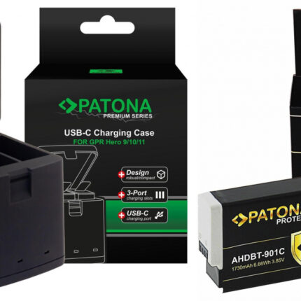 PATONA Ladebox für 3 GoPro HERO 9/10/11/12 + 3x Akku